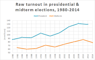 History says that the Democrats do have a good chance of gaining seats and momentum in the midterm elections. History is usually a good guide and most bettors in Vegas look for trends. Midterms tend to bring much lower voter turnout than presidential elections and also tend to bring losses in Congress for the party in control of the White House. Here is the historical data:
